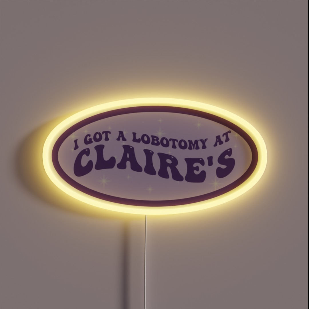 Neon “Lobotomy at Claire’s” Sign – A quirky, eye-catching retro-style neon light that pokes fun at the infamous 90s beauty trend with a nostalgic nod to Claire’s Accessories.