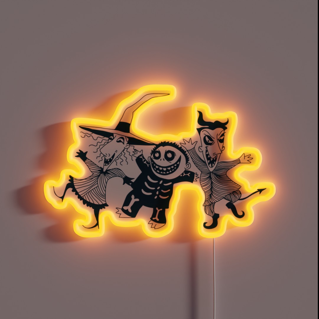 Add a touch of edgy style to your gaming space with the Lock, Shock & Barrel RGB neon sign, featuring iconic characters from Tim Burton’s Corpse Bride in vibrant, customizable colors.
