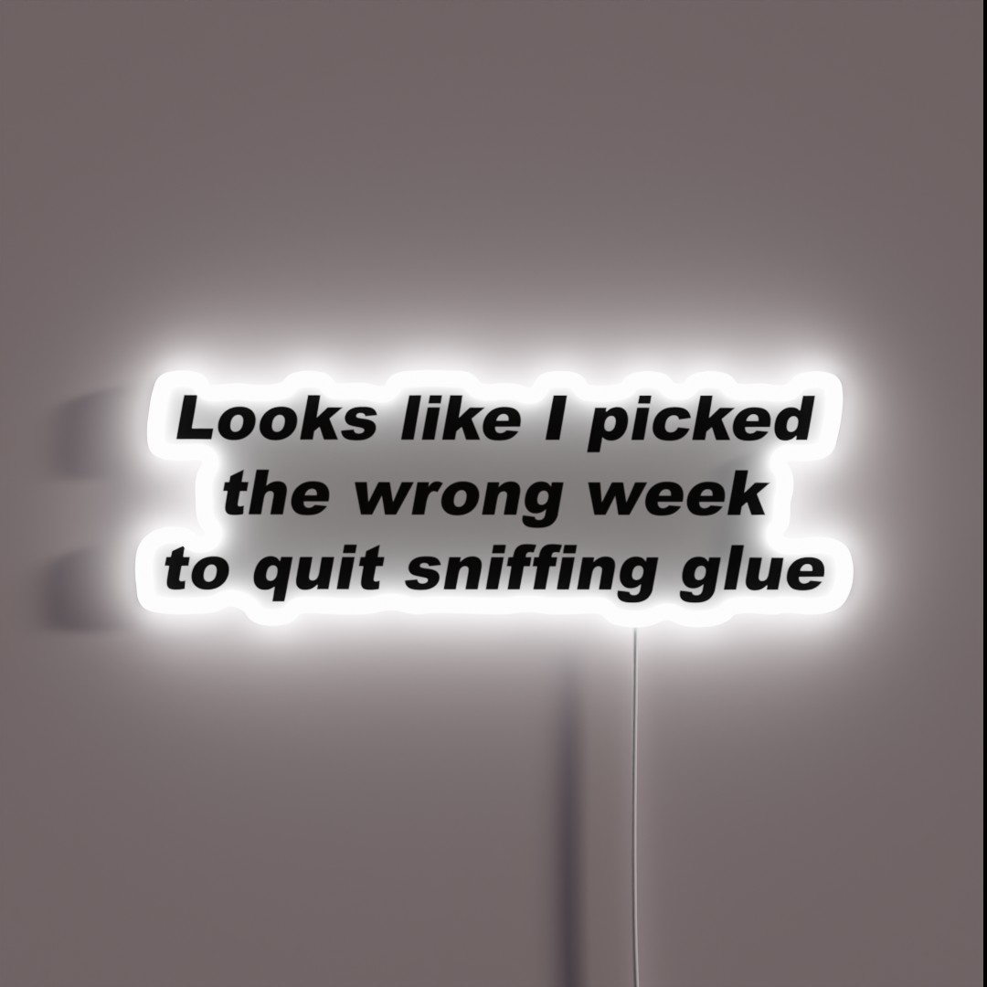 Whether you’re looking to add some whimsy to your decor or simply want a fun conversation starter, the Looks Like I Picked the Wrong Week to Quit Sniffing Glue RGB Neon Sign is an excellent choice. Its unique blend of humor and customization options make it a standout product that’s sure to delight anyone who sees it!