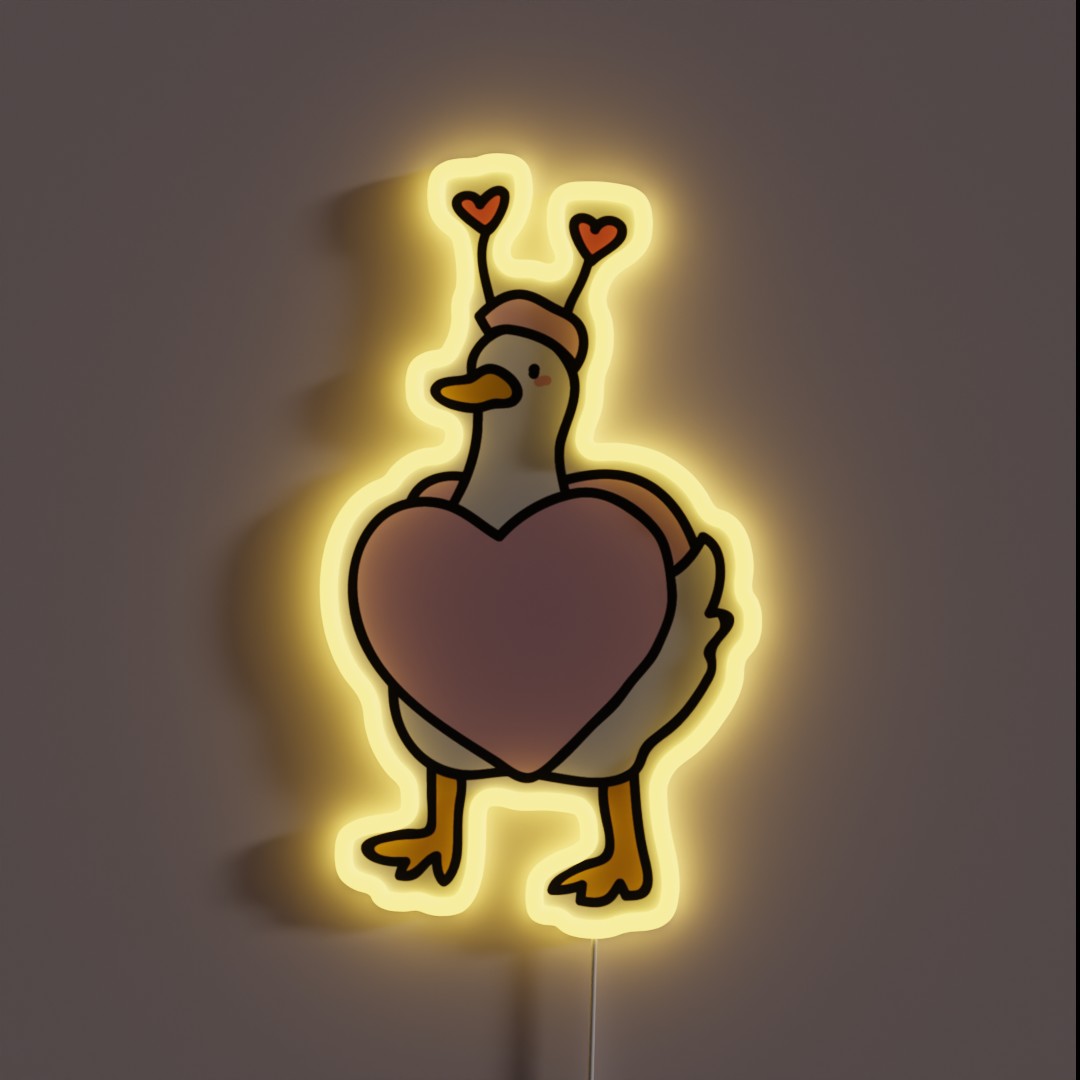 A whimsical and vibrant LED neon sign featuring a lovable goose in radiant RGB colors, adding a playful touch to any room with its soft glow.