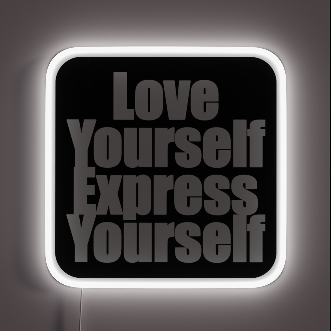 Bring home the Love Yourself Express Yourself RGB neon sign and express your unique personality with style. Perfect as a decorative piece or a thoughtful gift for yourself or someone special, this sign is sure to light up the space and ignite the spirit of self-love and individuality within you.
