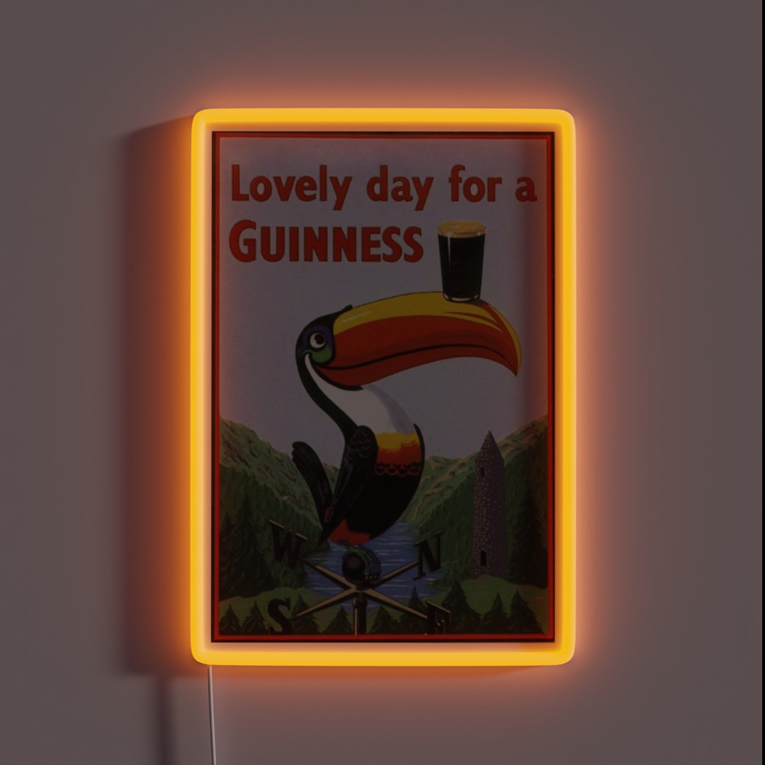 Add a touch of Irish charm to your home or bar with the Lovely Day for a Guinness RGB neon sign, featuring iconic phrases and vibrant colors to create a fun and lively ambiance.