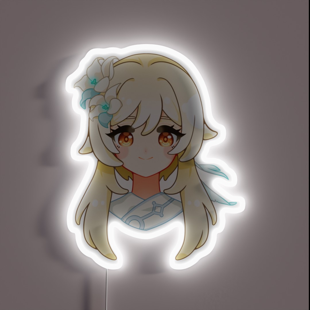 Lumine Traveler Anemo Genshin Impact Turquoise RGB Neon Sign