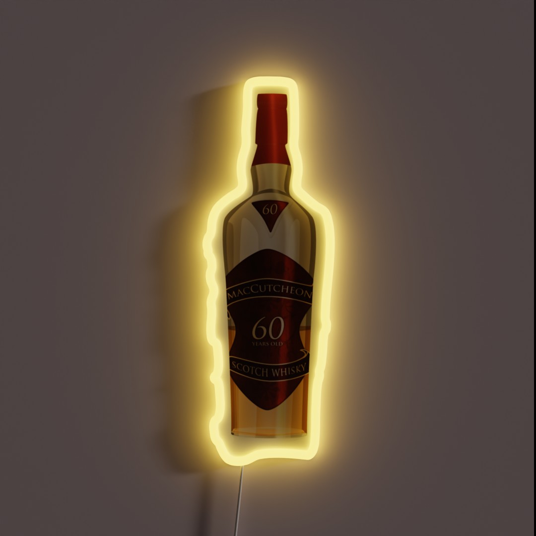 Add a touch of retro glamour to your space with our handcrafted MacCutcheon RGB neon sign, perfect for whiskey enthusiasts and design lovers alike.