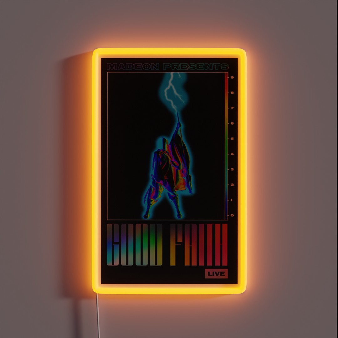 Add a touch of electronic music elegance to your space with the Madeon Good Faith Live RGB neon sign, a vibrant tribute to the critically acclaimed album.
