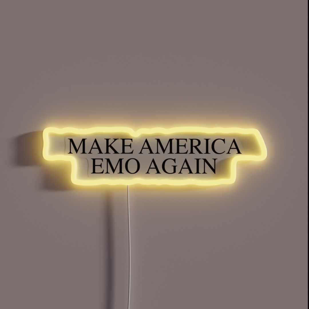 Add a touch of 2000s nostalgia to your space with our ‘Make America Emo Again’ RGB neon sign, a quirky tribute to the emo movement that’s sure to spark conversation and bring some old-school charm to any room.