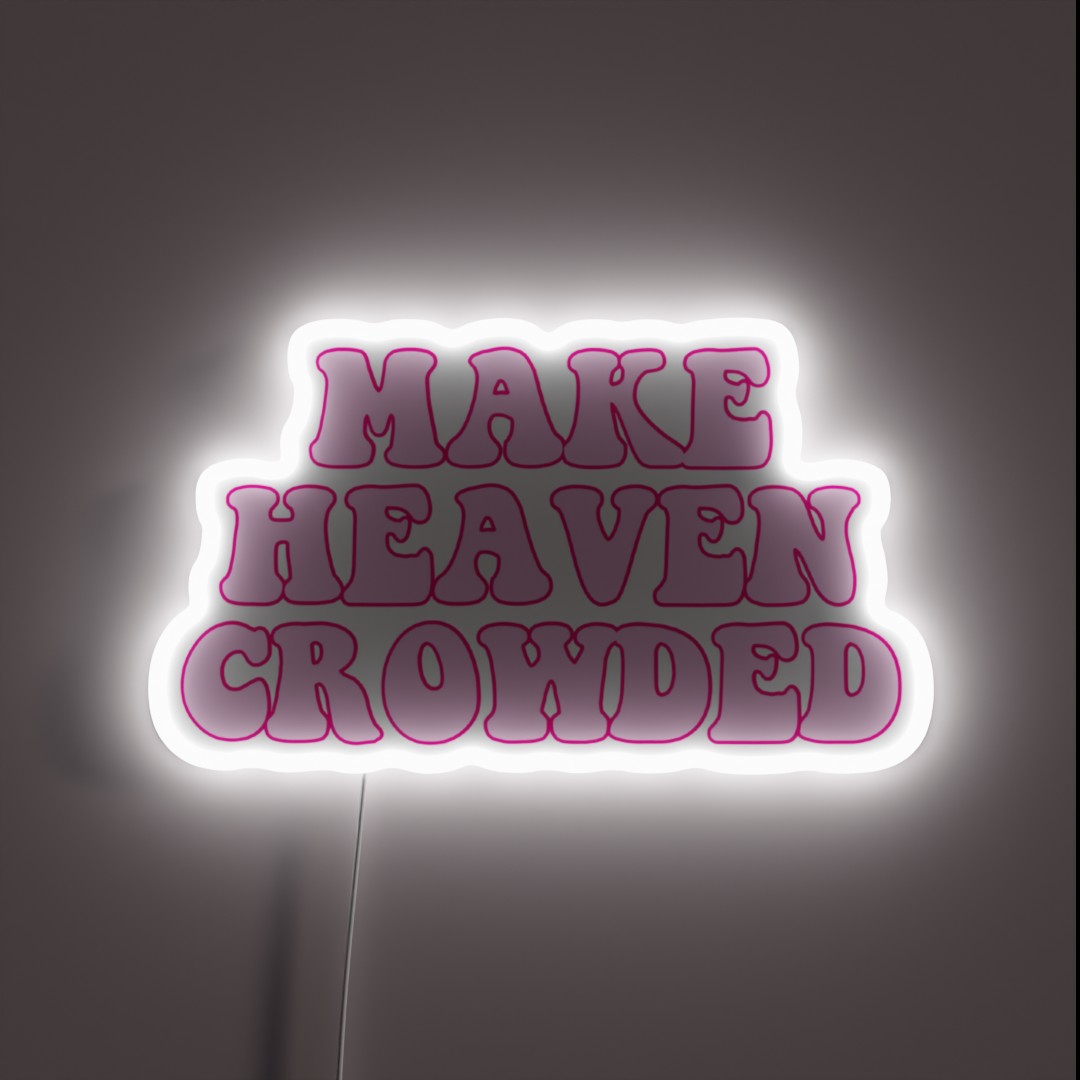 Add a touch of whimsical fun to your home decor with this unique Make Heaven Crowded RGB neon sign, featuring vibrant, color-changing LED lights that create an eye-catching display.