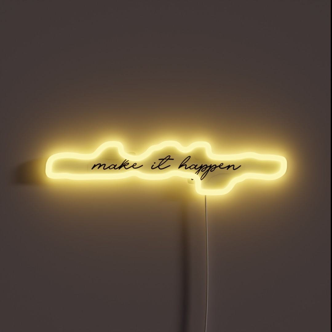 Motivate your space with this vibrant ‘Make It Happen’ RGB neon sign, featuring an inspiring message to drive success and positivity.