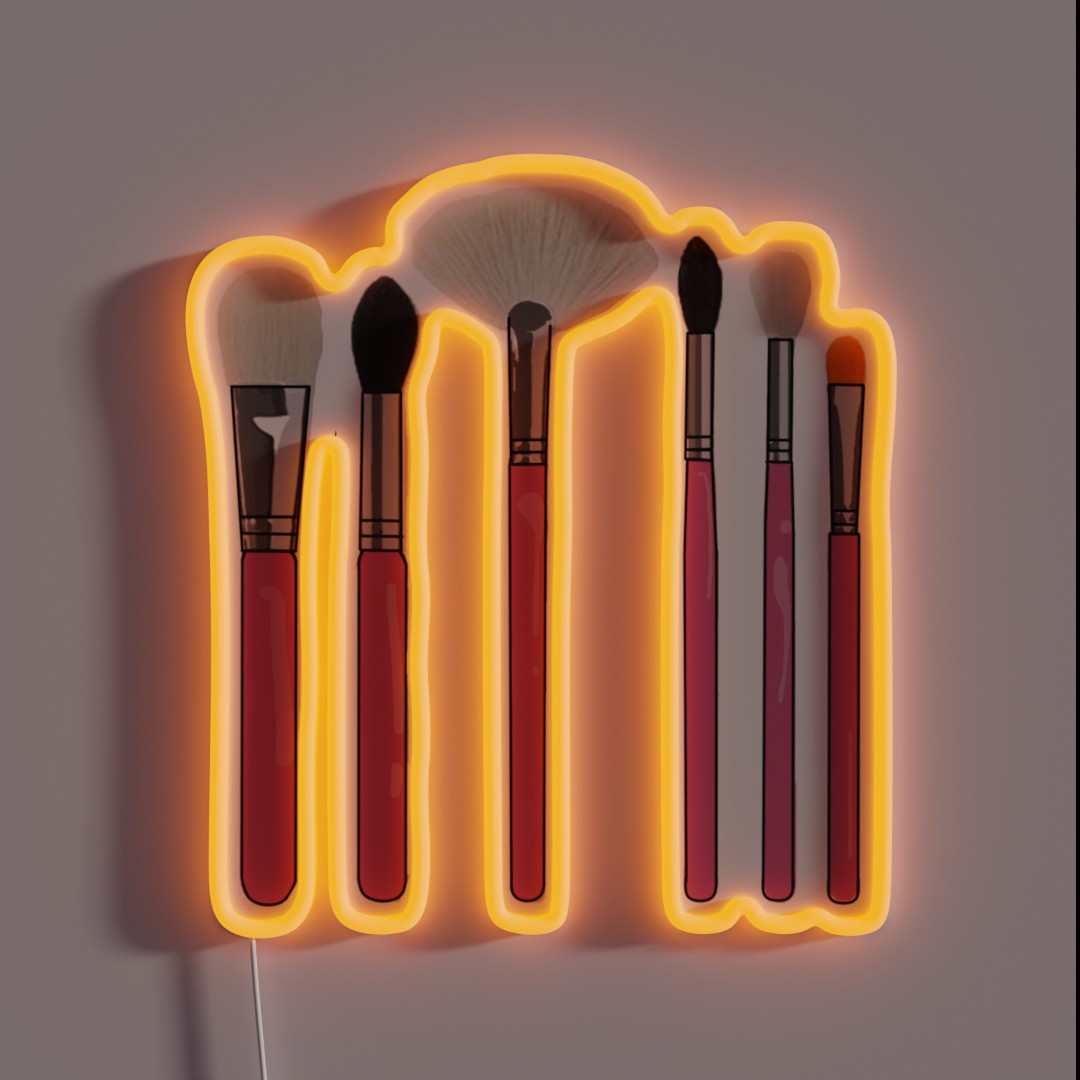 Add a vibrant touch to your makeup station with this colorful RGB neon sign featuring bold, eye-catching letters that read ‘Makeup Brushes’ in neon lights.