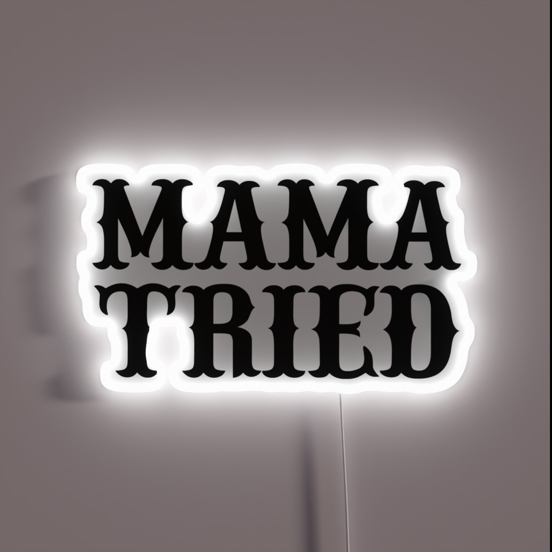 Add a touch of rebellious style to your space with the Mama Tried RGB neon sign, featuring vibrant LED lights that can be color-shifted to match any mood.