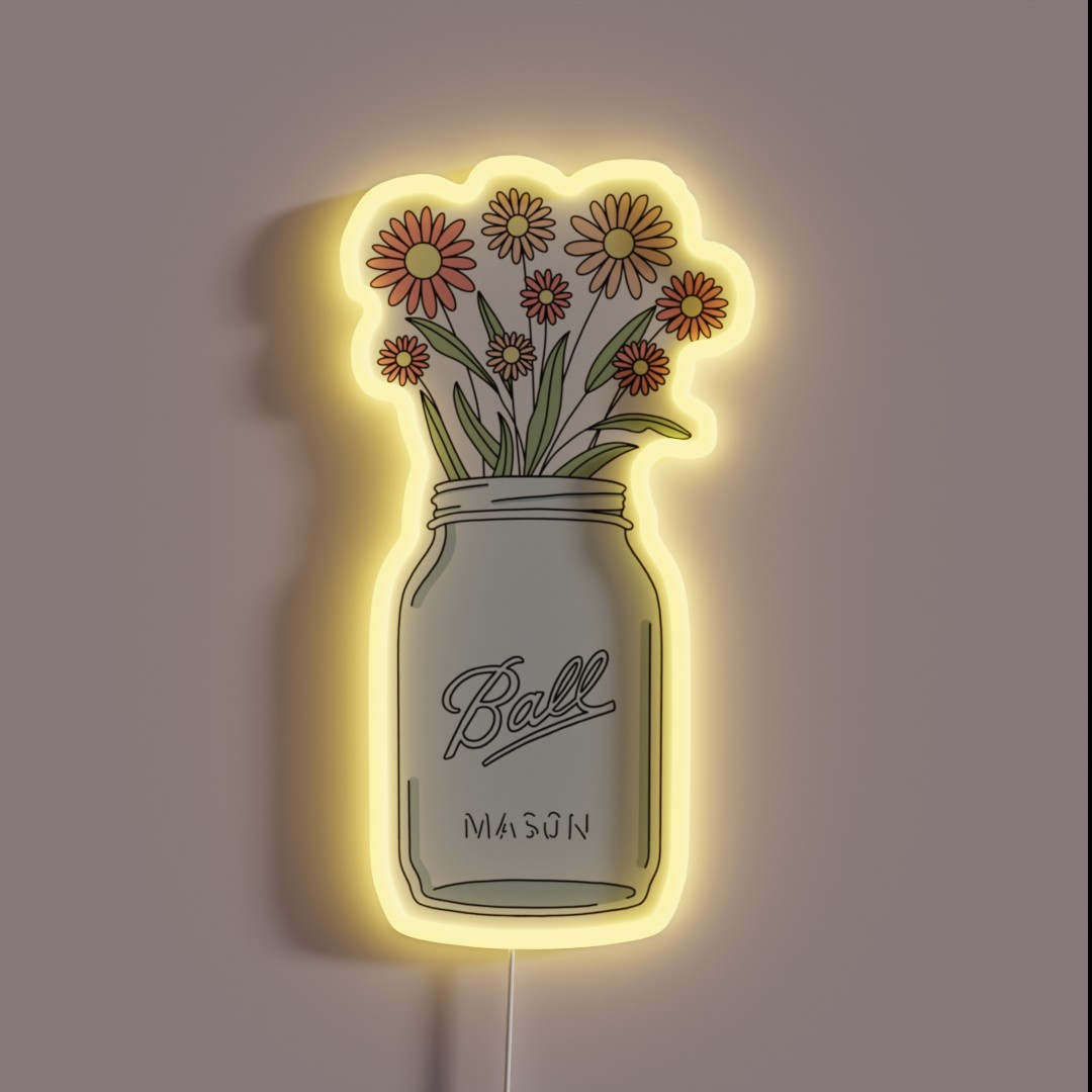 Bring a pop of color and charm into your life with the Mason Jar Pink Flowers RGB Neon Sign – order yours today!