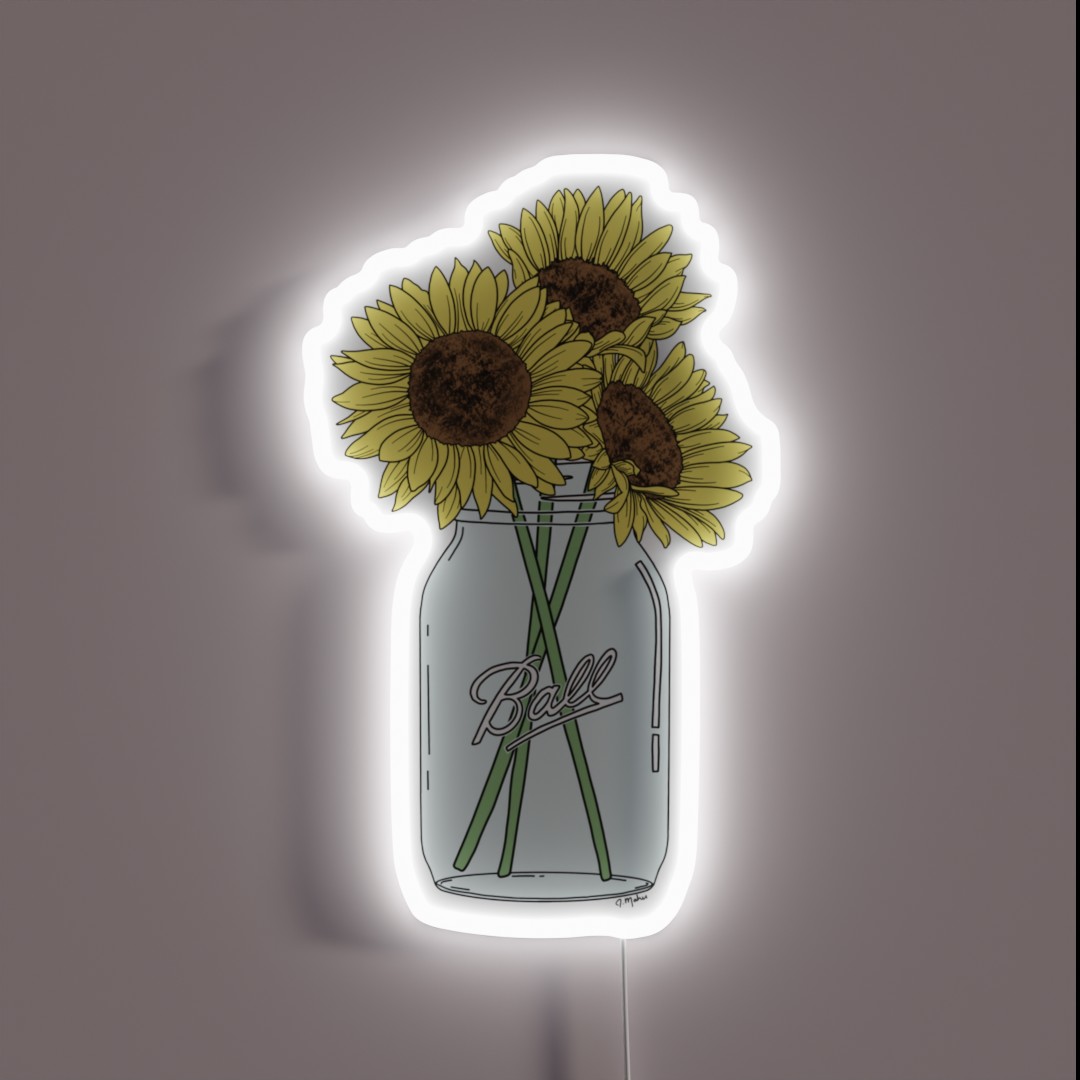 Transform your space into a charming retreat with the Mason Jar Sunflowers RGB Neon Sign. Its warm glow will captivate and delight all who see it!