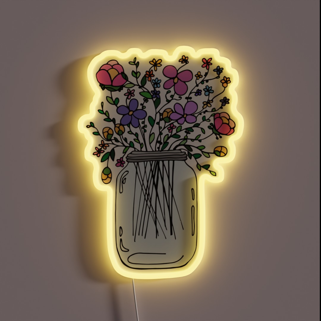 Add a touch of whimsy and modern charm to any room with this unique Mason Jar with Flowers RGB neon sign, featuring vibrant digital flowers in a glass mason jar design.