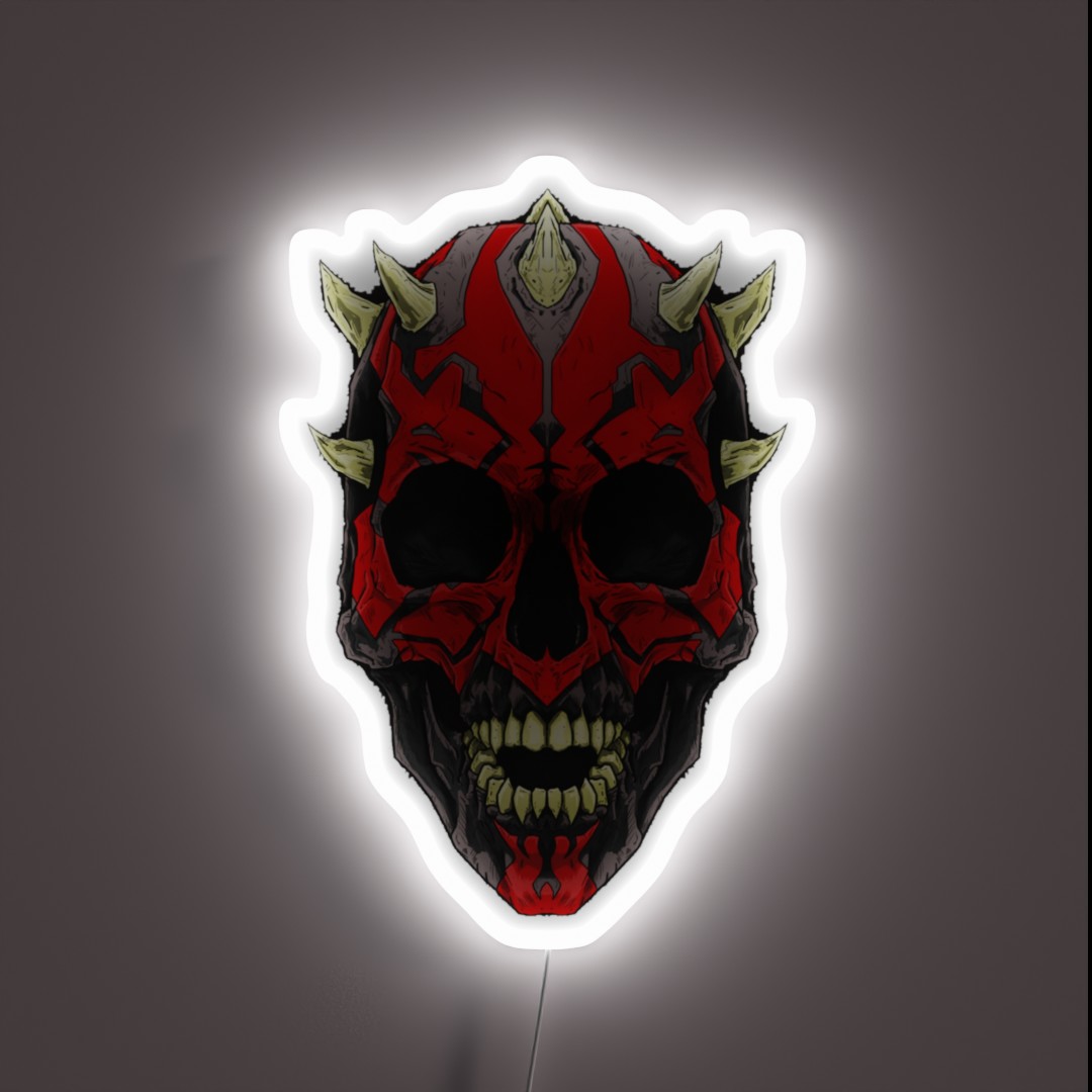 Add a touch of dark elegance to your gaming setup or home decor with this unique Maul Skull RGB Neon Sign, featuring vibrant neon lights and a menacing skeletal design.