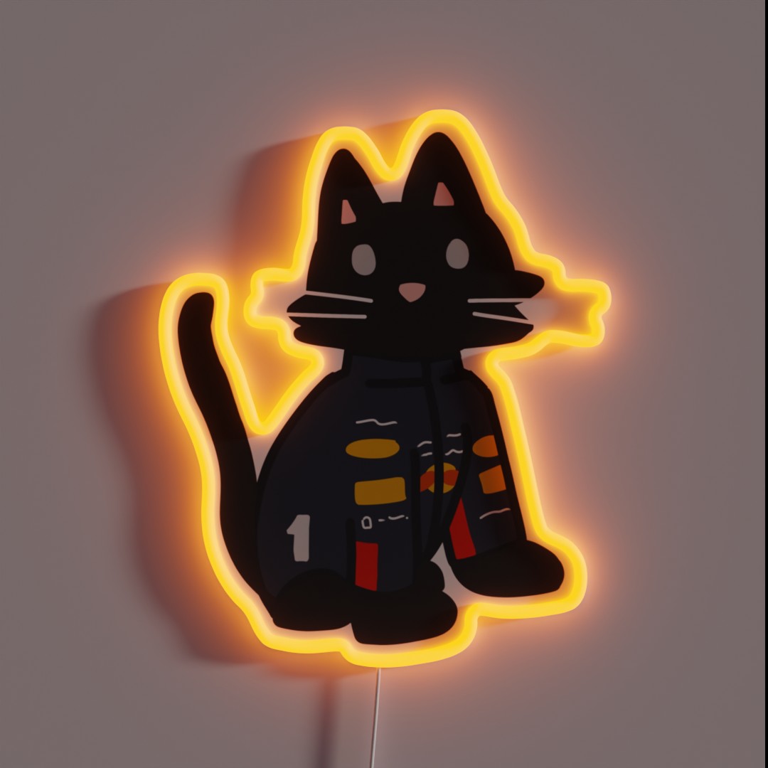 Unleash your inner Red Bull fanatic with this unique Max Verstappen as a cat RGB neon sign, combining quirky feline charm with the world of F1 racing.
