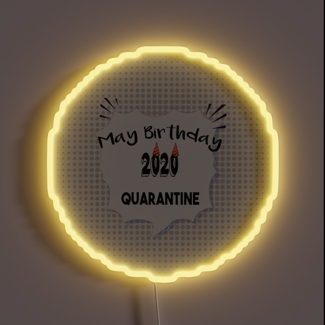 Quarantined but still celebrated! This unique ‘May Birthday 2020 Quarantine Birthday’ RGB neon sign commemorates your special day during the COVID-19 pandemic, perfect for social distancing gatherings and a nostalgic keepsake.