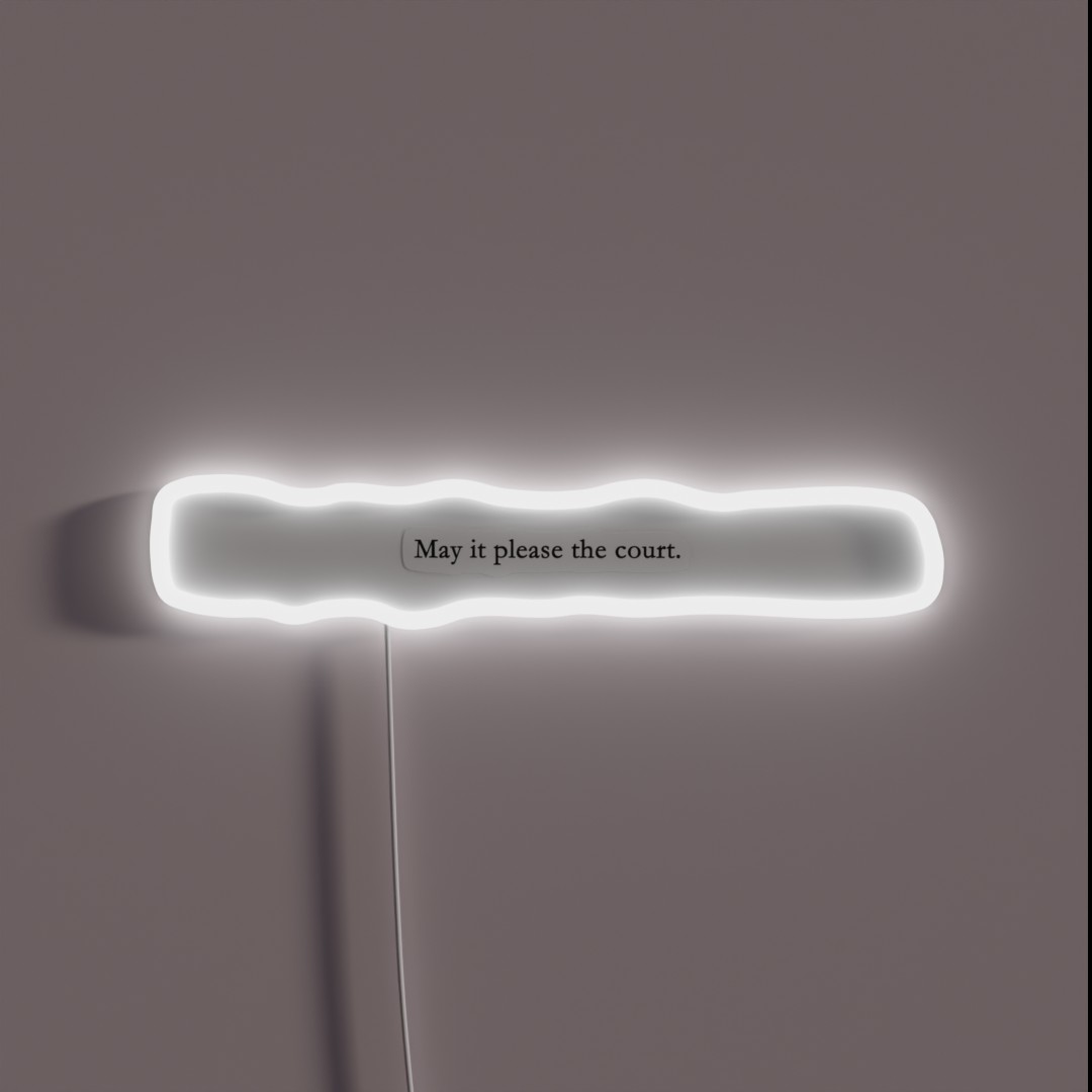 A vibrant, handcrafted May It Please the Court RGB neon sign, adding a touch of judicial charm to any room while illuminating your love for law and justice.