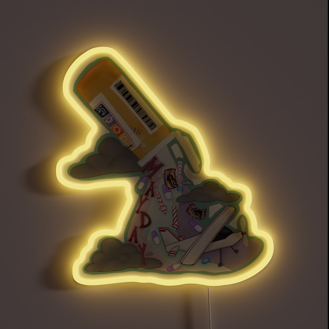 Add a pop of color and personality to your gaming setup or room decor with this vibrant Mayday Mayday RGB neon sign featuring a bold, eye-catching design that will illuminate any space.