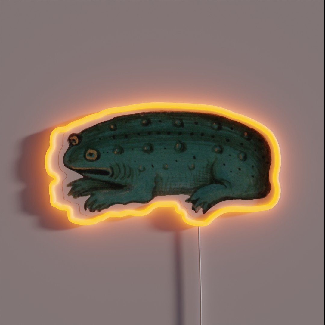 A retro-chic, handcrafted LED neon sign featuring a medieval-inspired design of a frog in bold RGB colors, perfect for gamers and enthusiasts alike.