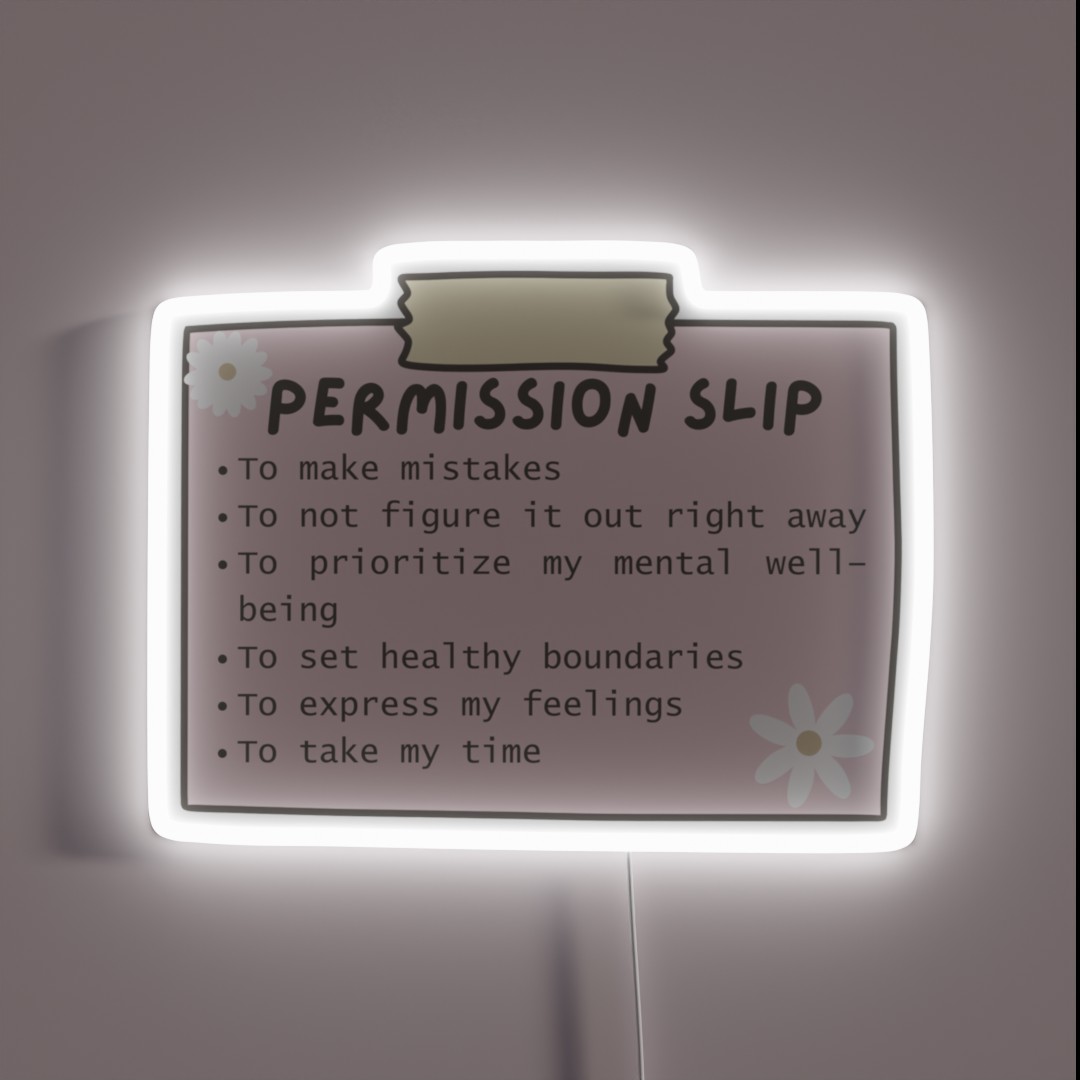 **Mental Health Permission Slip Positive Affirmations RGB Neon Sign**