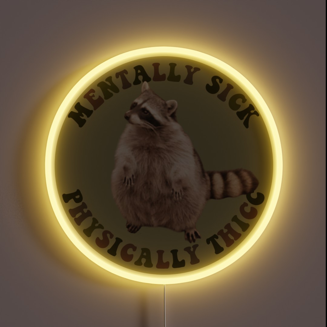 Mentally Sick Physically Thicc Chubby Raccoon RGB Neon Sign