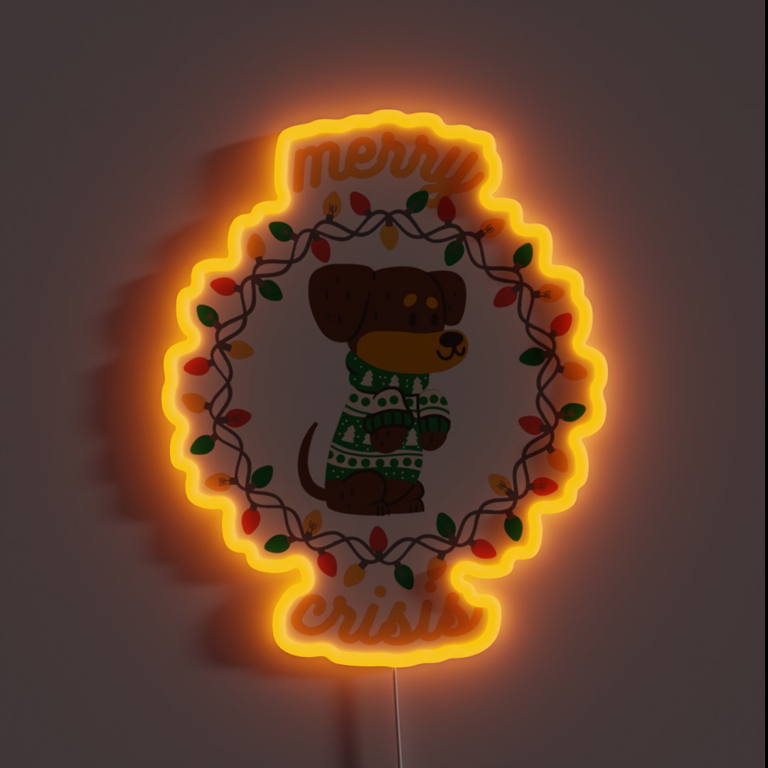 Merry Crisis Puppy Xmas RGB Neon Sign