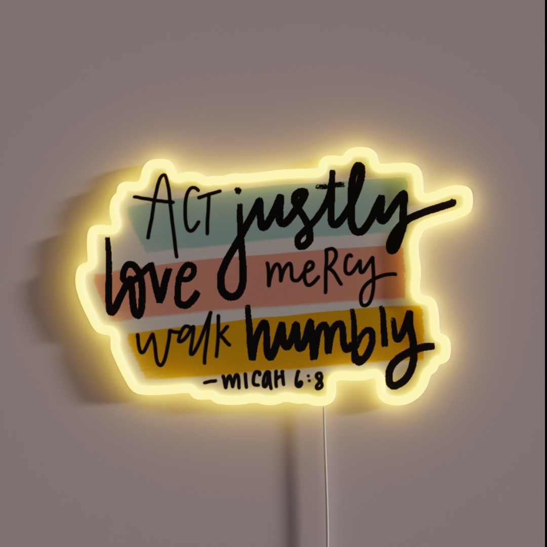 Biblical inspiration meets modern decor with the Micah 6:8 RGB neon sign, featuring a radiant light-up display of God’s divine justice and mercy.