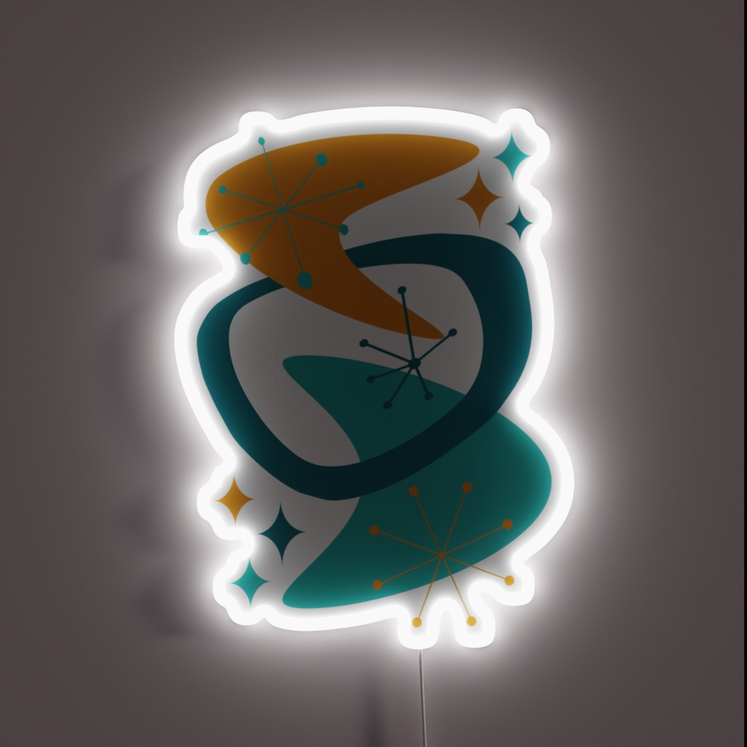 Add a blast of retro flair to your space with this authentic Mid Century Atomic Age-inspired 7 Aqua Teal Orange RGB neon sign, featuring vibrant colors and a mesmerizing glow.