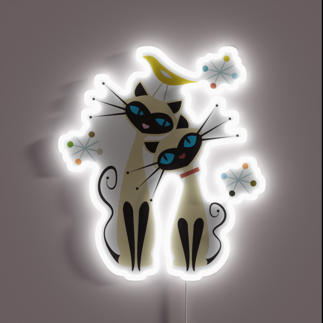 Elevate your home decor with this radiant Mid Century Modern Cats RGB neon sign, blending retro flair and colorful personality to create a unique conversation piece.