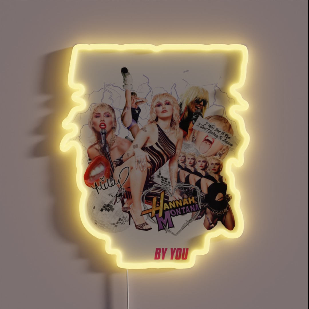 Add a touch of rockstar glamour to your space with this one-of-a-kind Miley Cyrus RGB neon sign, featuring vibrant colors and iconic lyrics that will light up any room.