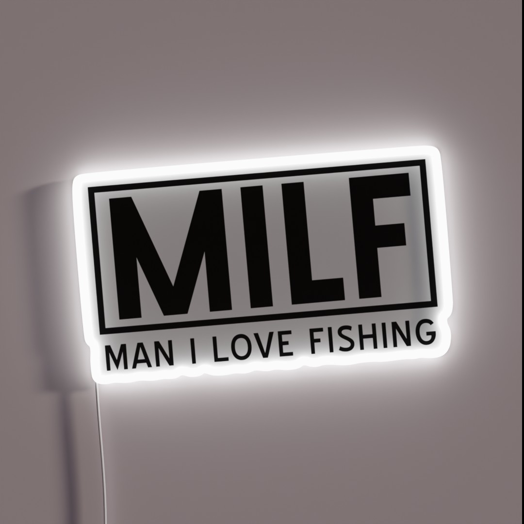 Unique, customizable RGB neon sign featuring a playful ‘MILF Man I Love Fishing’ design, perfect for outdoor enthusiasts and water sports fans.