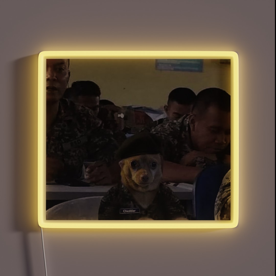 The Military Cheddar design embodies the spirit of military history and tradition. With its bold, rugged aesthetic, this sign is sure to captivate anyone who sees it. Whether you’re a collector, enthusiast, or simply looking to add some personality to your space, this RGB neon sign is an excellent choice.