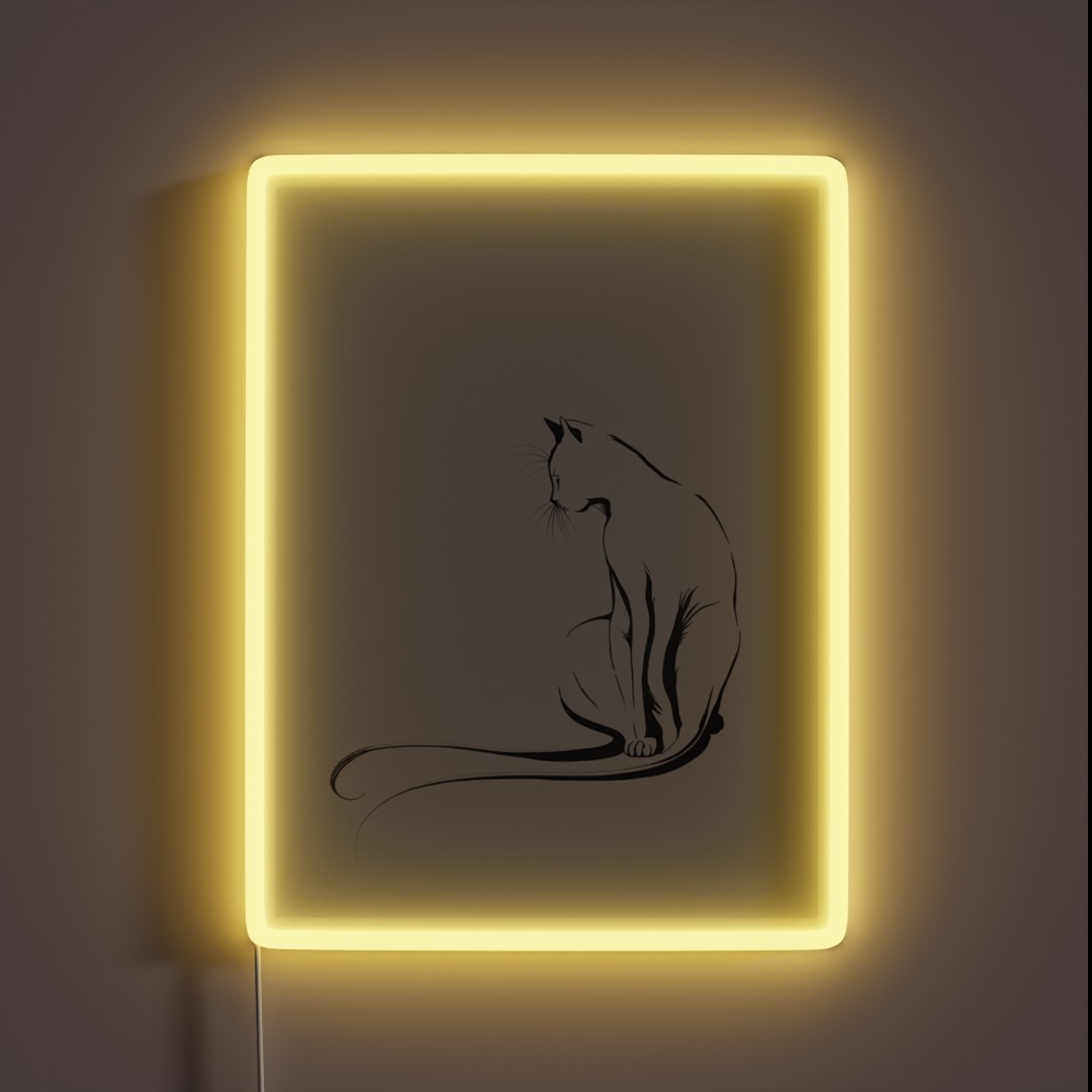 Elevate your space with the unique Minimalist Eclectic Artwork of a Stretching Cat RGB Neon Sign. This modern masterpiece combines sleek design with vibrant color options to create a truly one-of-a-kind decorative piece.