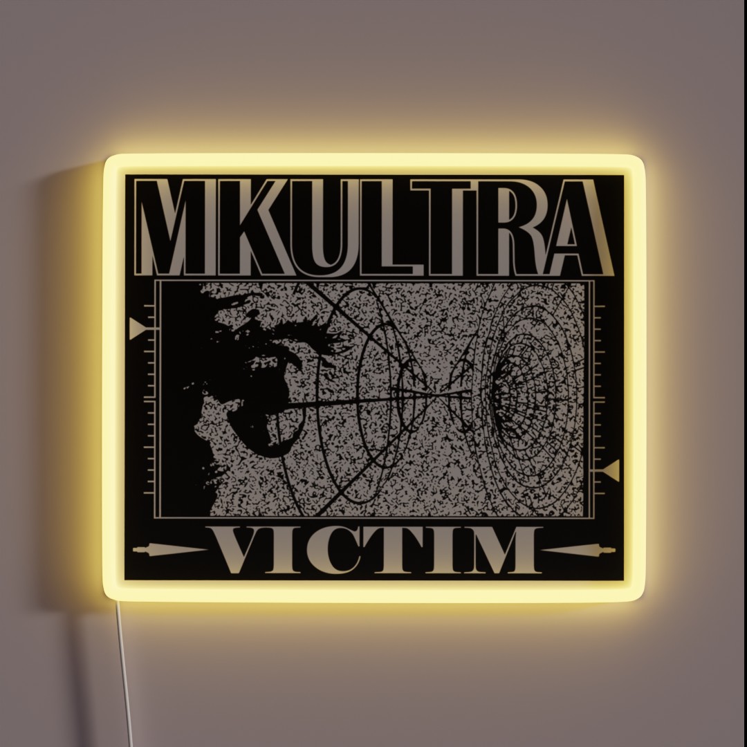 Elevate your space with the MKULTRA VICTIM RGB neon sign, a bold tribute to the dark history of CIA mind control experiments, now available in vibrant color options.