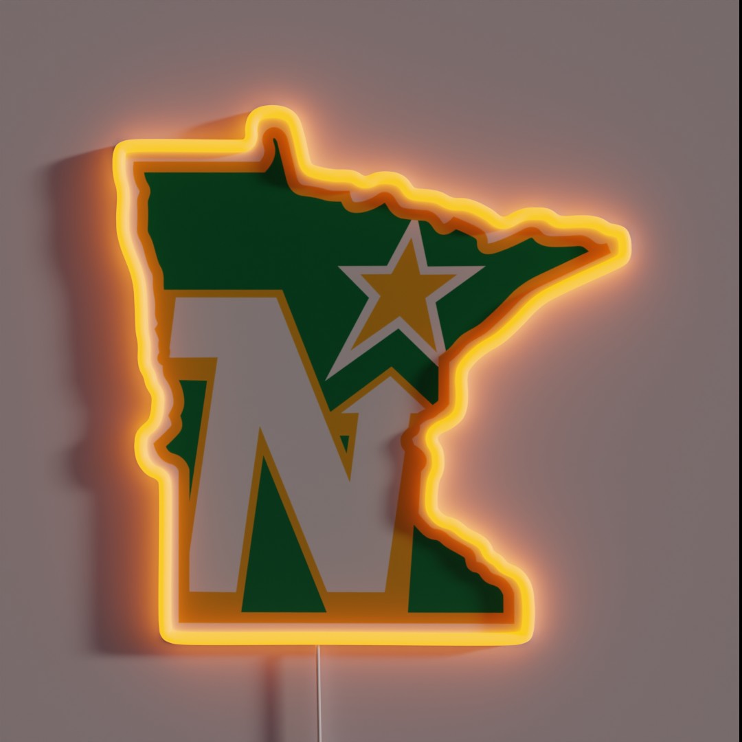 The sign’s outline shape pays homage to the iconic Minnesota star, making it a great addition for anyone with pride in their MN heritage. Whether you’re looking to personalize your home decor or create a unique focal point in your office, this RGB neon sign is an excellent choice.