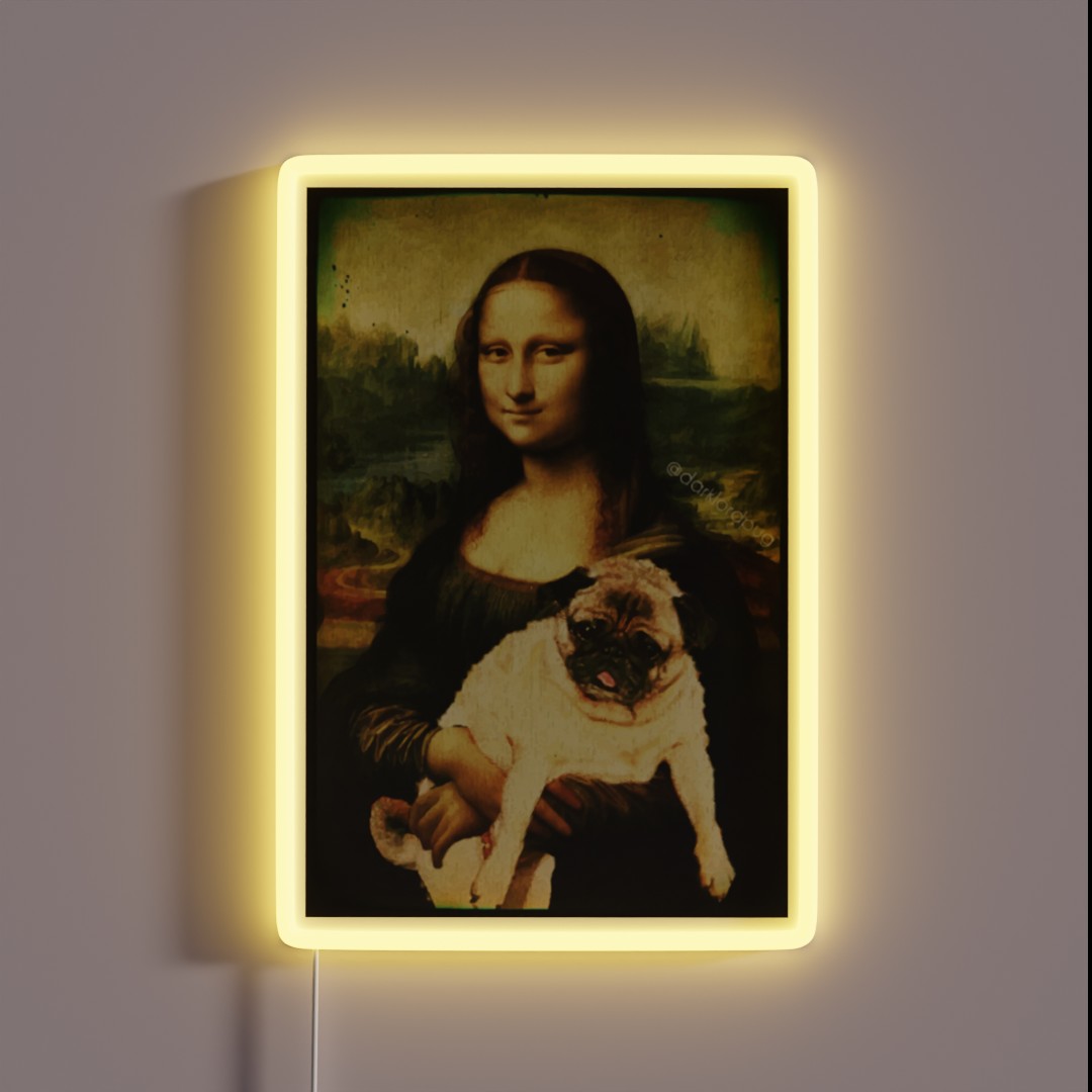 Experience the magic of this Mona Lisa Pug RGB Neon Sign and add a touch of personality to your home. Perfect as a gift or a unique decorative piece, it’s sure to delight art enthusiasts and animal lovers alike.
