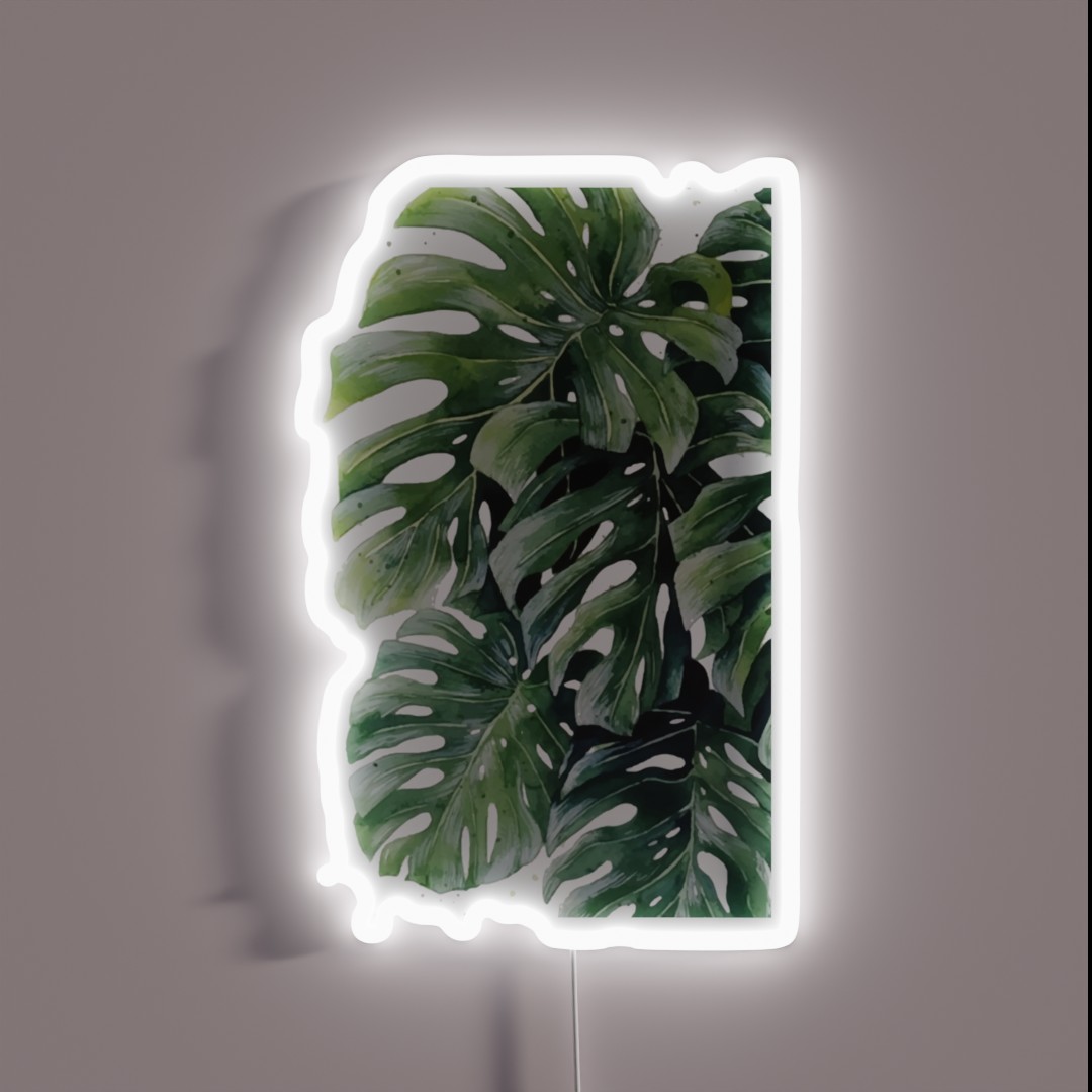 Elevate your home decor with this unique Monstera Leaves 10 RGB neon sign, featuring vibrant, colorful foliage that brings a touch of tropical elegance and modern style to any room.