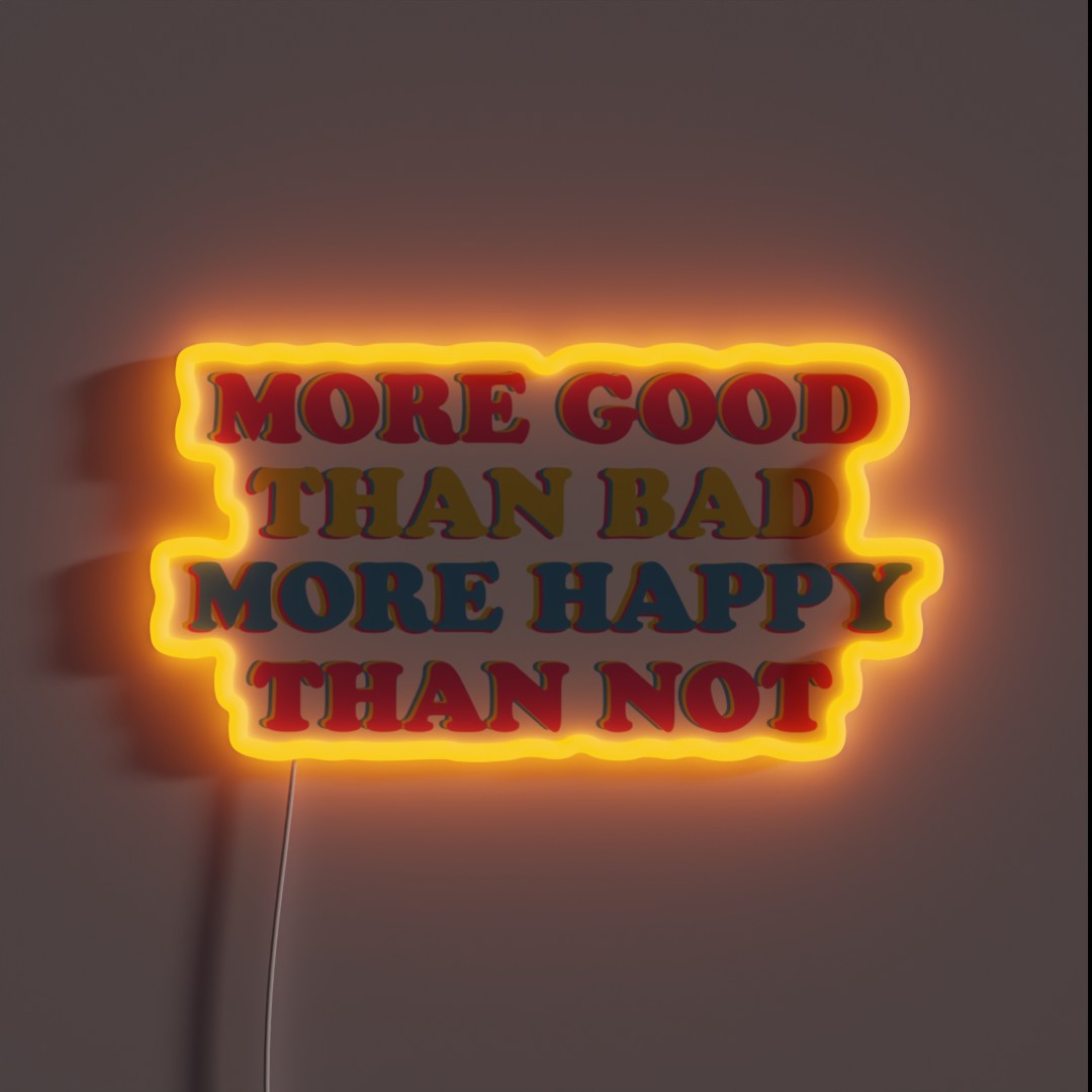 Bring a splash of fun and positivity into your life with our “More good than bad more happy than not” RGB neon sign. Perfect for: