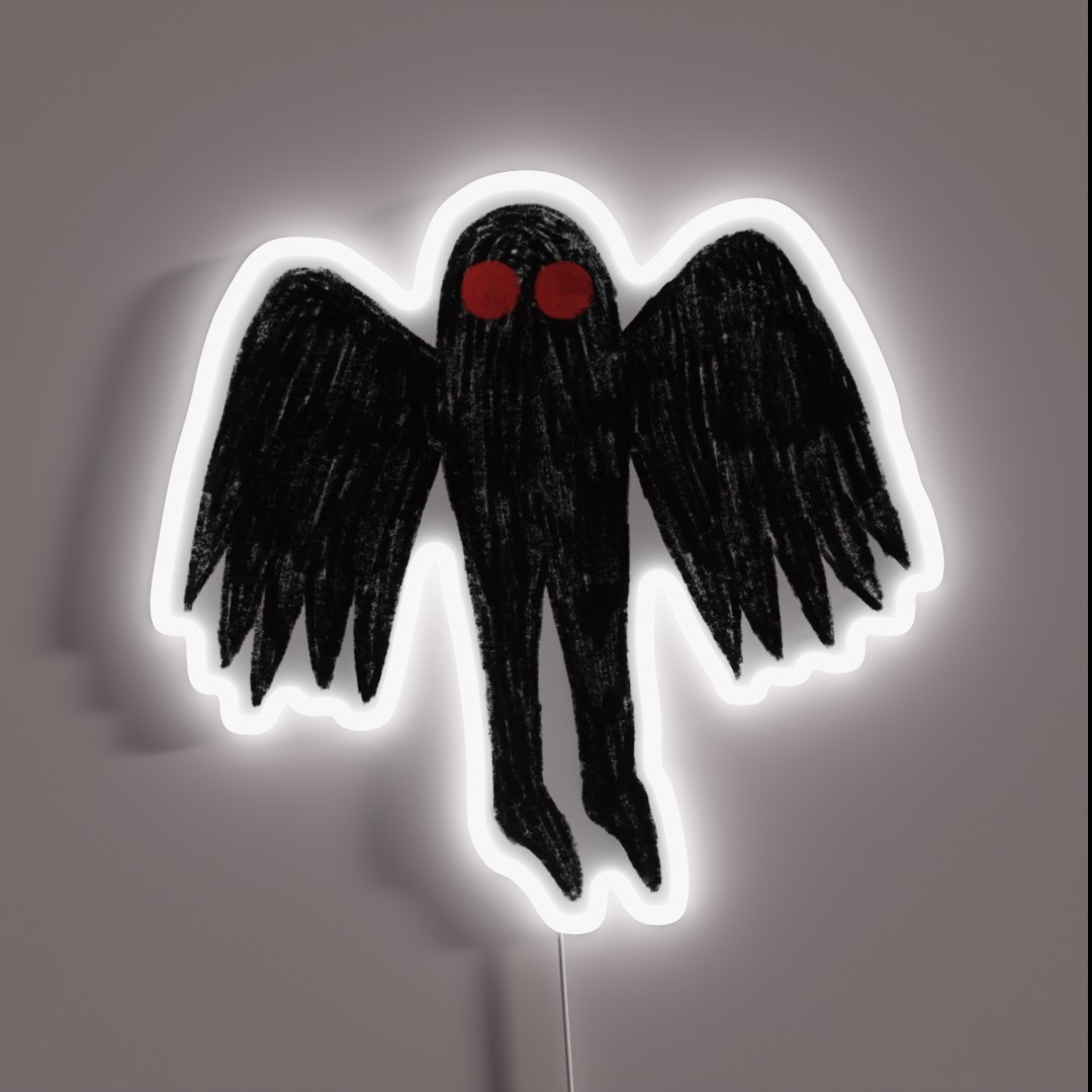 Mothman neon sign featuring 3D LED art and vibrant RGB lighting, capturing the mystical creature’s eerie presence in your home or office.