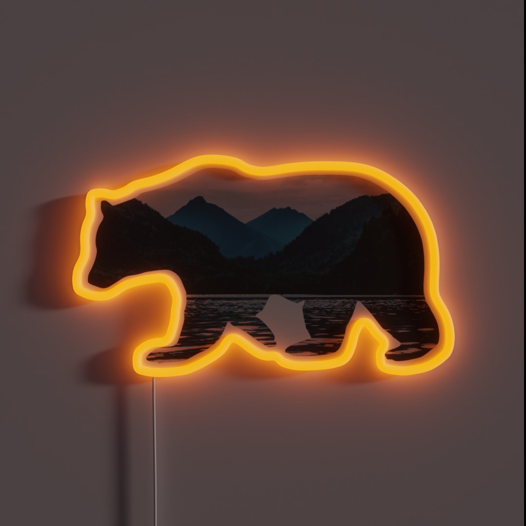A vibrant and customizable Mountain Bear RGB neon sign that illuminates your space with dynamic color-changing light, perfect for gaming, home decor, or any enthusiast’s den.