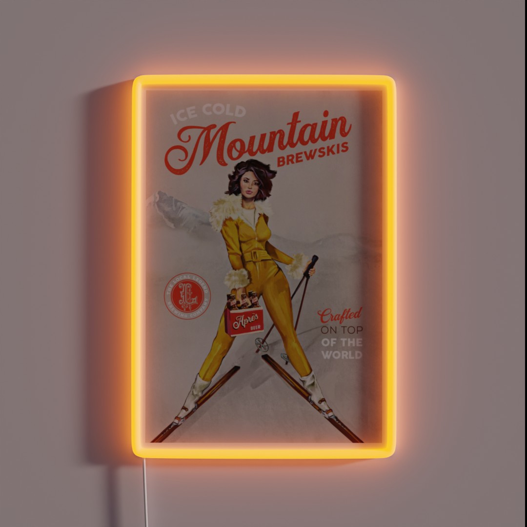 Add a touch of vintage glamour to your space with our handcrafted Mountain Brewskis Pinup Girl RGB neon sign, featuring a sultry pin-up girl surrounded by nostalgic beer advertisements and customizable color-changing LED lights.