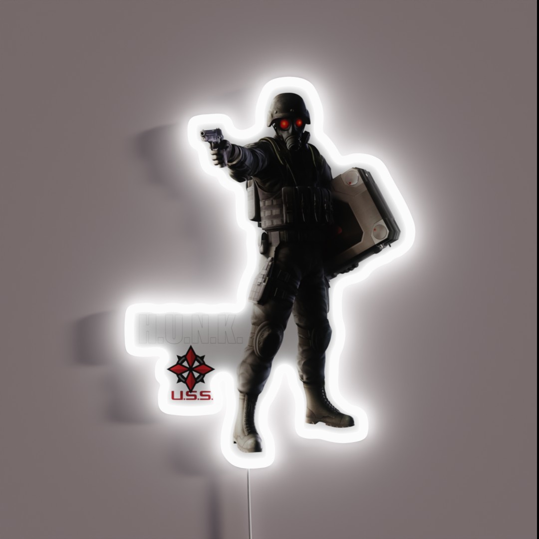 A mesmerizing LED neon sign that brings a touch of edgy style to your gaming setup or home decor, featuring a bold ‘Mr. Death’ design with customizable RGB colors.