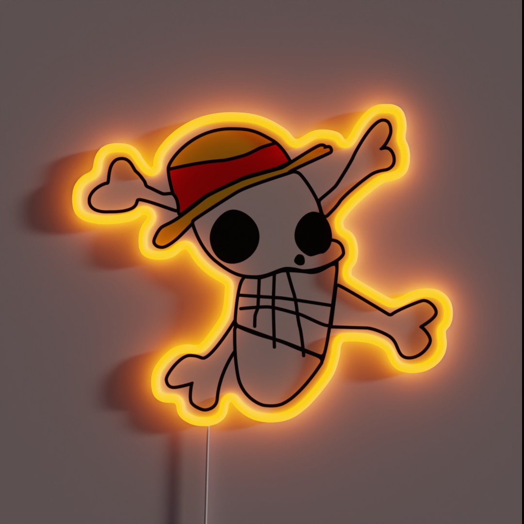 Add a touch of pirate flair to your gaming setup with the Mugiwara RGB neon sign, featuring colorful LED lights and a striking design inspired by the popular One Piece character.
