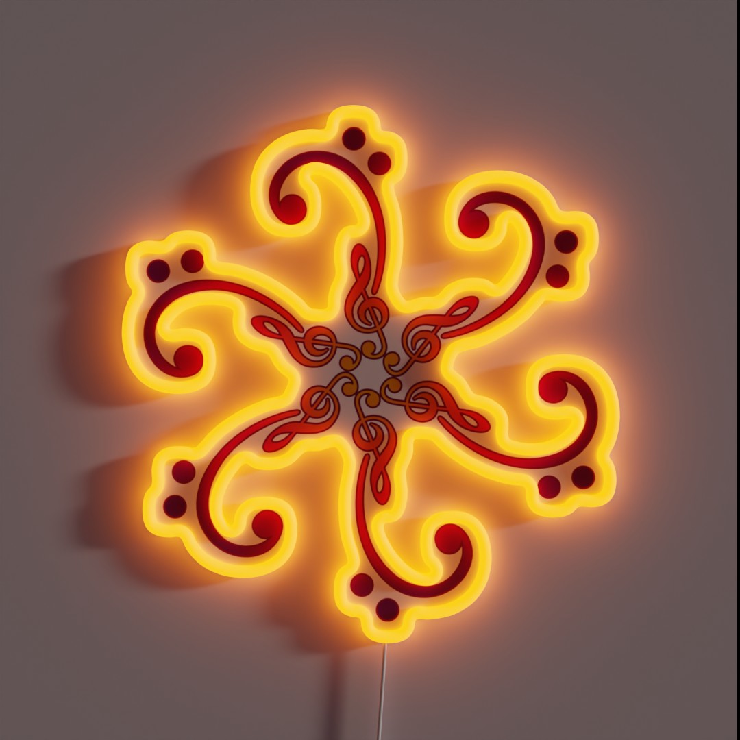 Add a touch of melodic charm to any room with our unique Music Bass Treble Mandala Neon Sign, featuring colorful notes and clefts in vibrant RGB hues.