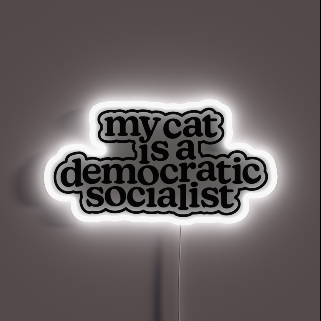 Showcase your feline friend’s progressive values with this humorous My Cat is a Democratic Socialist RGB neon sign, perfect for cat lovers and left-leaning individuals alike.