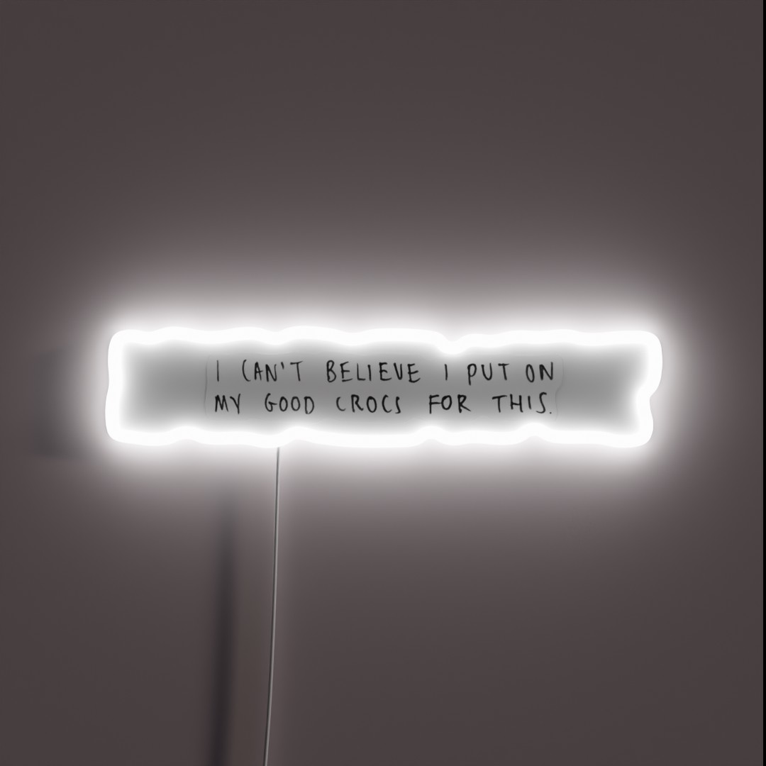 Neon RGB light-up sign featuring my good Crocs logo in vibrant colors, perfect for decorating any room with a fun and quirky vibe.