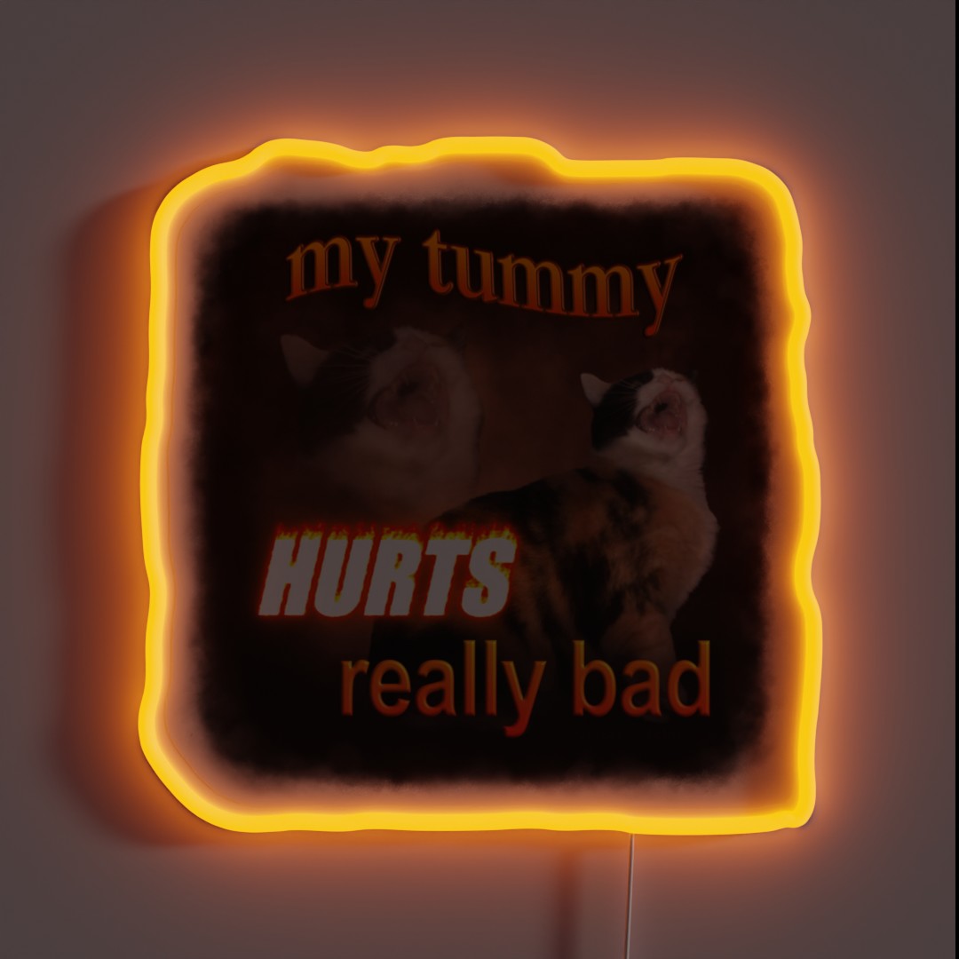 My Tummy Hurts Really Bad Cat Word Art RGB Neon Sign