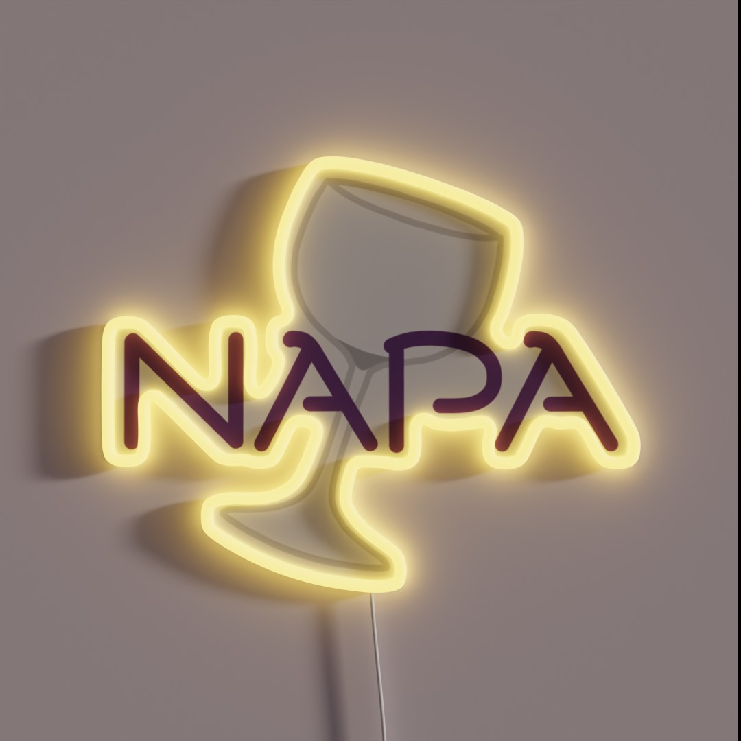 Elevate your wine cellar or bar with this customizable Napa Wine Glass RGB neon sign, bringing a touch of modern elegance and personalized flair to any room.