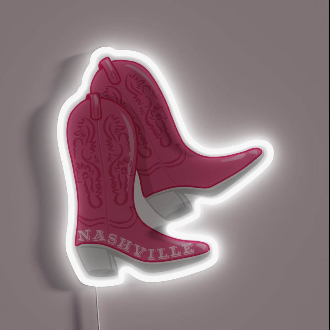 Nashville-inspired boots with customizable RGB lighting and neon accents, perfect for country music fans and boot enthusiasts alike.