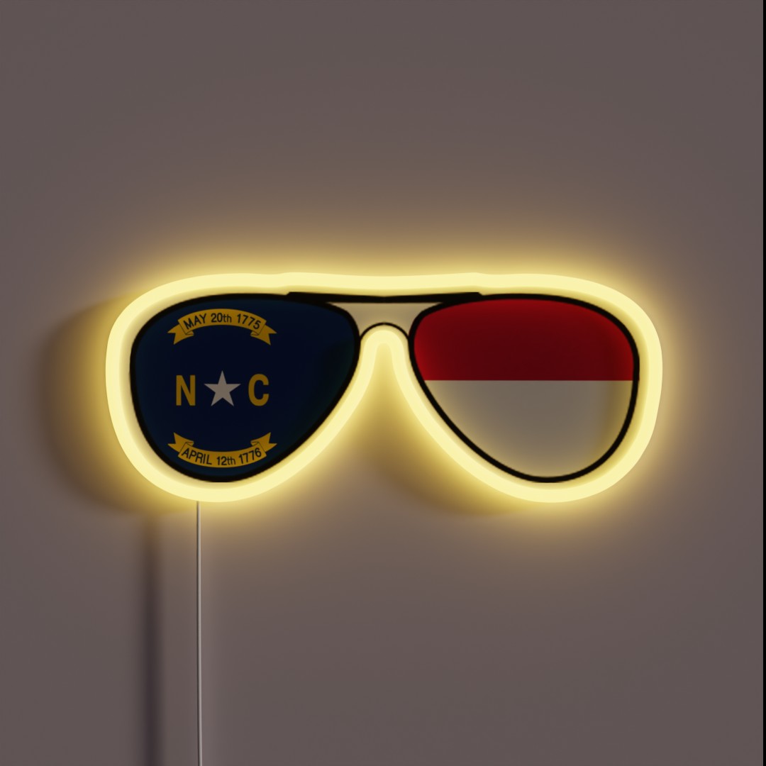 Eye-catching NC sunglasses with built-in RGB neon lights that light up in multiple colors, adding a unique and bold touch to your everyday look.